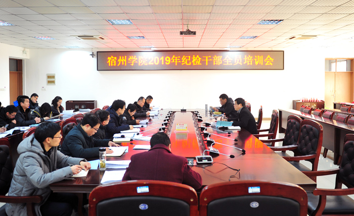 12月31日,宿州学院召开2019年纪检干部全员培训会。会议由校纪委书记王俊主持,纪委委员、校第一届党风党纪监督员、特约监察员、各党总支纪检委员、纪委办公室全体人员参加会议。