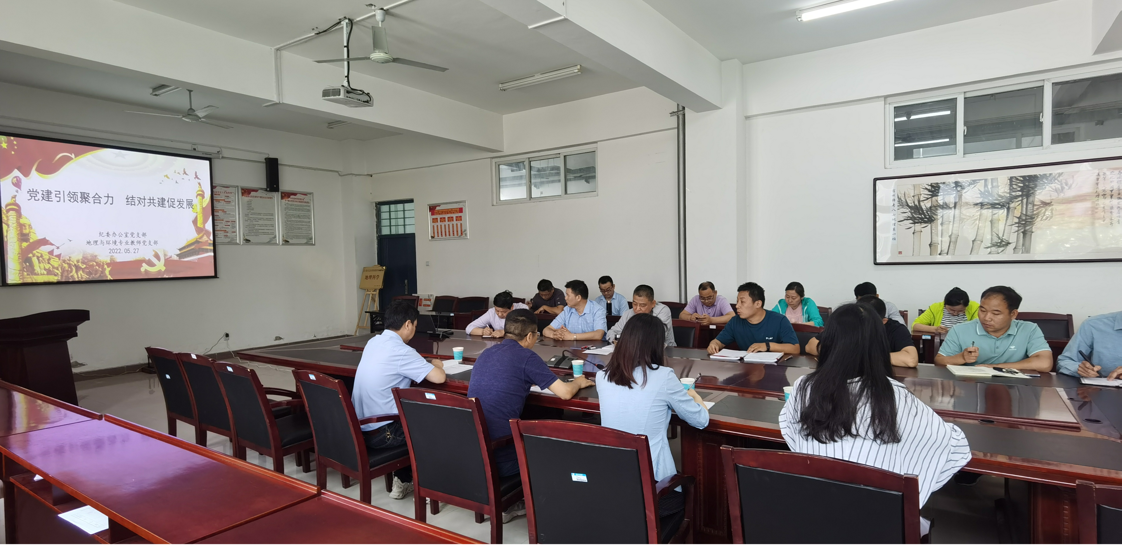 5月27日上午,纪委办公室党支部和地理与环境专业教师党支部在环境与测绘工程学院会议室开展“党建引领聚合力 结对共建促发展”活动,纪委办公室党支部党员和地理与环境专业教师党支部党员参加。