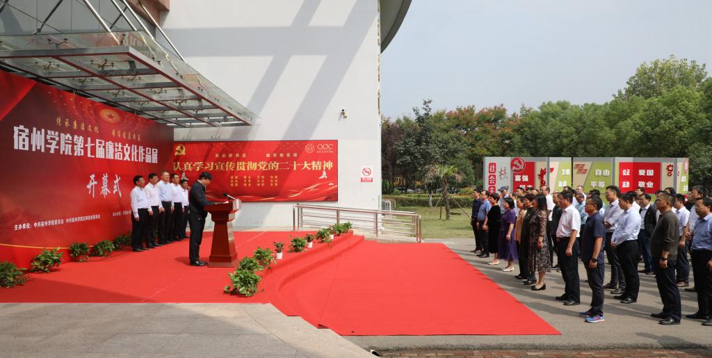 为深入学习宣传贯彻党的二十大精神,9月27日上午,“传承廉洁文化 谱写发展新篇”宿州学院第七届廉洁文化作品展在美术与设计学院展厅开展。院党委书记李红,党委副书记、院长李福华,党委副书记王俊,党委委员、副院长李亮,党委委员、副院长杨维志,党委委员、纪委书记、监察专员邢存海出席作品展开幕式,各单位党政主要负责人、学生代表参加开幕式。