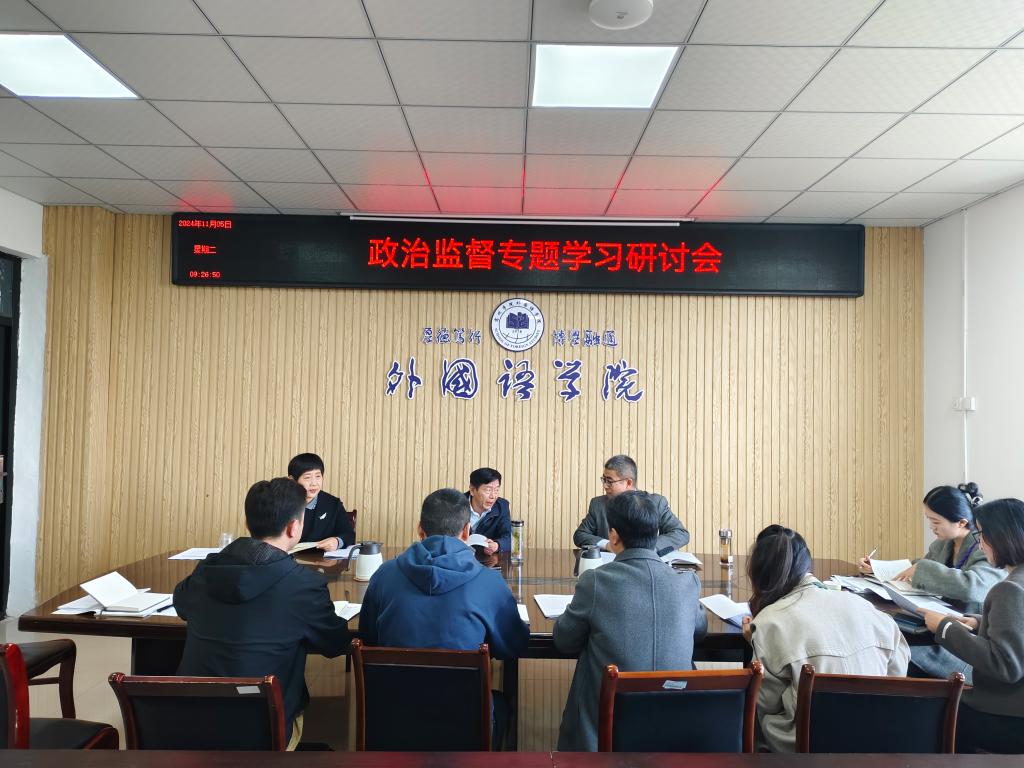 11月5日上午,宿州学院纪检监察、巡察部门在逸夫楼A318会议室联合召开政治监督专题学习研讨会。党委常委、纪委书记、监察专员邢存海出席会议,巡察办公室主任李真,纪委办和巡察办全体人员参加会议。会议由纪委副书记、纪委办公室主任杨杰主持。