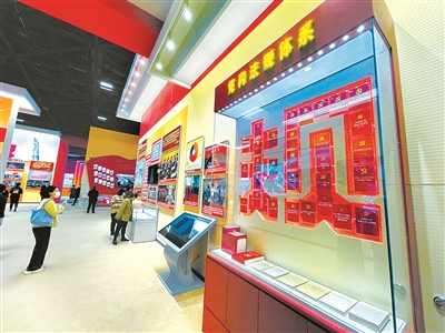 9月27日,“奋进新时代”主题成就展在北京展览馆开幕。“全面从严治党 保持党的生机活力”展区展示了十年来党内法规制度建设成果。