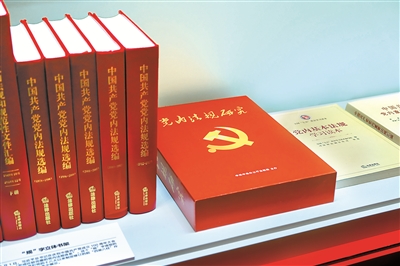 下图为展出的中国共产党党内法规选编等资料。中央纪委国家监委网站 王雅婧 摄